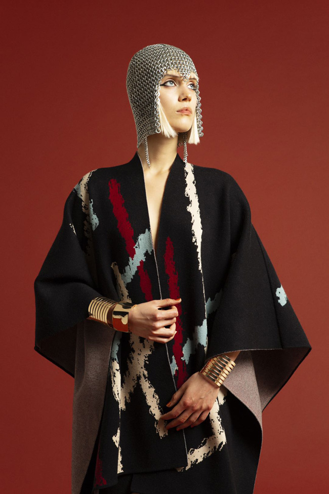 劉彥君:JUNNE本系列靈感來源于公元前5000年前的古埃及文明。系列中融入金字塔墻壁上的象形文字,以及鑄就圖騰的煉金術(shù),金碧輝煌的質(zhì)感與巖石般的肌理交織,并提煉古埃及壁畫中的色彩更大膽地呈現(xiàn)。